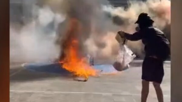 Un grupo de encapuchados y overoles blancos realizaron desmanes al interior del establecimiento educacional, en donde prendieron fuego a una barricada puesta en el patio del liceo emblemático.